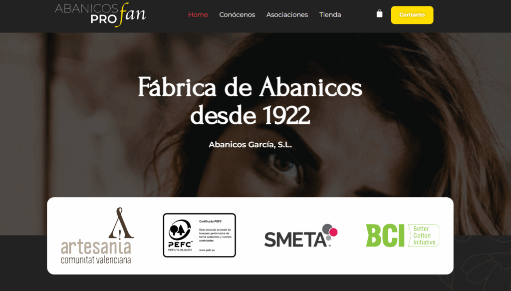 Desde Proyestudio colaboramos con Abanicos Profan en el desarrollo de su presencia digital, creando una página web que refleja su especialización en la venta de abanicos artesanales. Nuestro objetivo fue diseñar una plataforma que transmitiera profesionalidad, claridad y confianza, alineada con los valores de la empresa y orientada a captar clientes potenciales interesados en sus productos.n