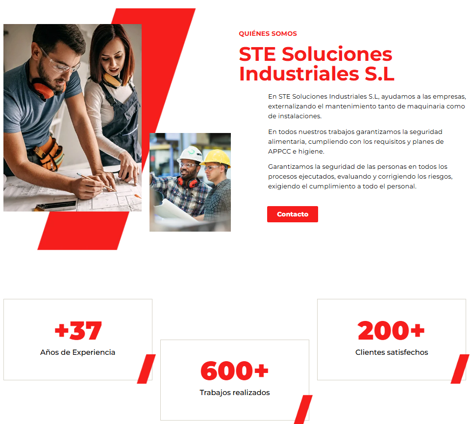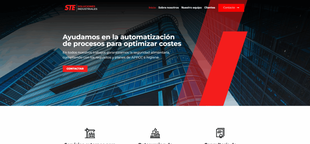 Desde Proyestudio colaboramos con STE Soluciones Industriales en la creación de una página web profesional alineada con su identidad corporativa y su perfil técnico-industrial. El objetivo era desarrollar una plataforma clara, funcional y optimizada que transmitiera confianza a clientes del sector alimentario e industrial, además de posicionar sus servicios estratégicos en buscadores.